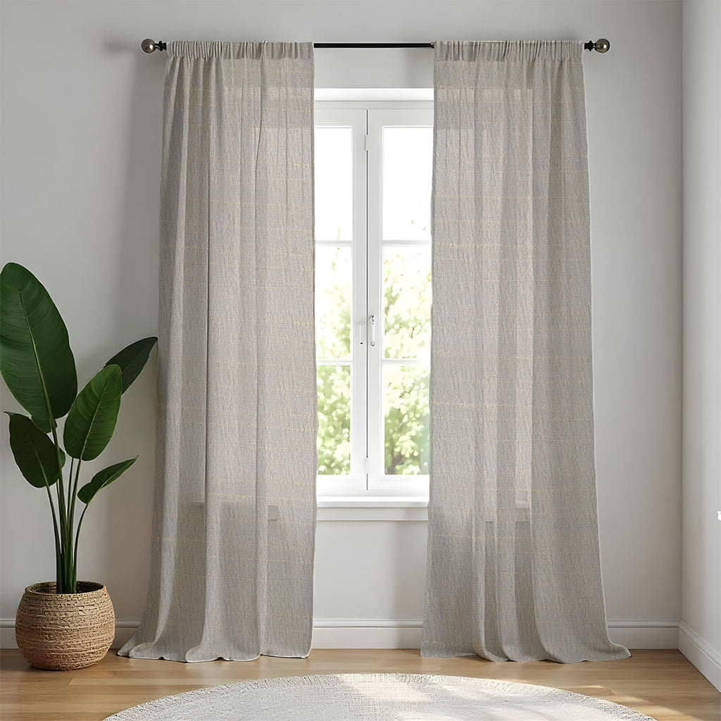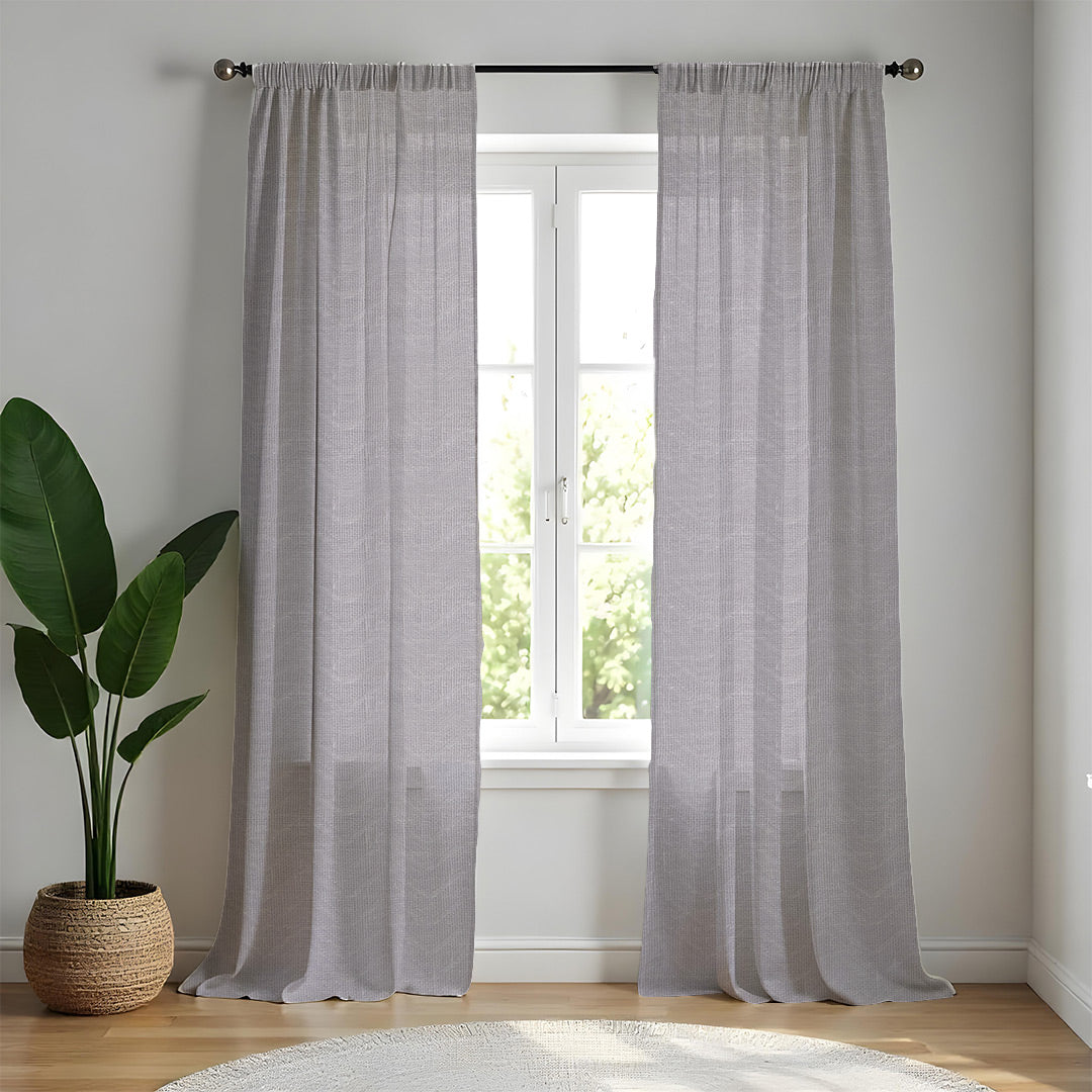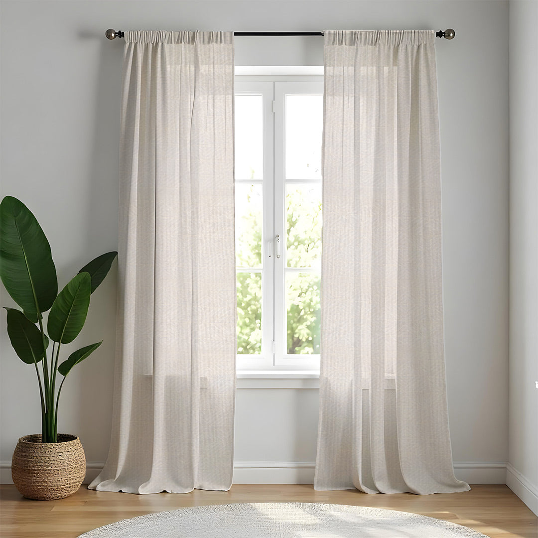 These collection is textured sheers, Crafted from 100% durable polyester, our sheer curtains promise no tear resistance and a luxurious feel without loose threads. Also they are Fade Resistant.Their ethereal quality and subtle texture will transform your space into a haven of tranquility and style Available in array of various solid colours like sunny yellow pristine white beige pastels ,drapes these curtains and enhance your home's aesthetic appeal.Our Urban Space linen look textures like sheer curtains blend seamlessly with any home decor offering a delicate balance of privacy and light filtration.